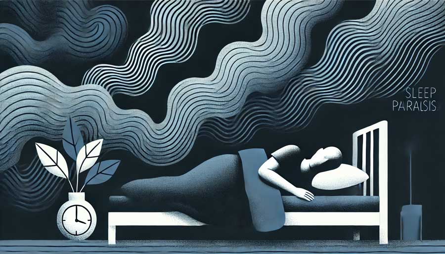 Questa condizione è associata a una sensazione di oppressione toracica, respirazione affannosa e presenza di allucinazioni, spesso di tipo visivo, uditivo o tattile. La paralisi del sonno è considerata un disturbo del sonno, ma può verificarsi anche durante la fase di transizione dallo stato di veglia a quello di sonno o viceversa.