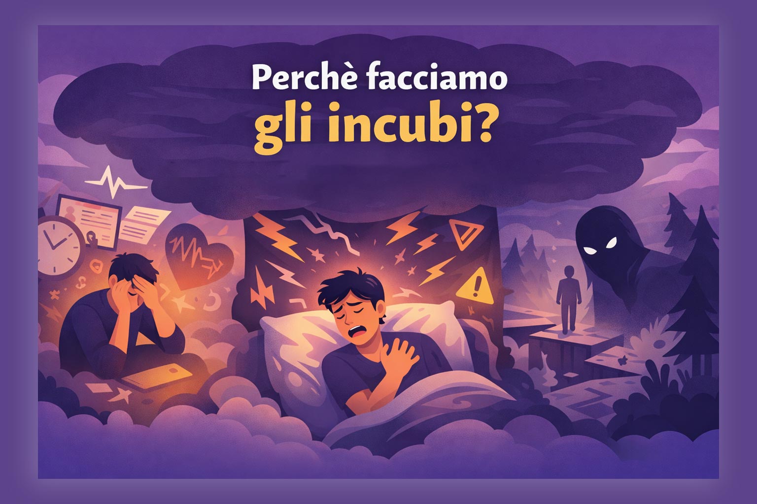Non tutti i brutti sogni sono incubi. La differenza principale è semplice: un brutto sogno può lasciarti agitato, ma l’incubo ti sveglia. Spesso, appena apri gli occhi, restano addosso paura, ansia, sudorazione, respiro corto o tachicardia.